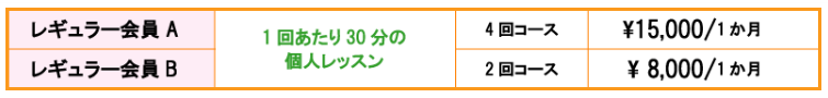 三か月間のスクール修了後もレッスンをご希望の方は、レギュラー会員(A/B)または